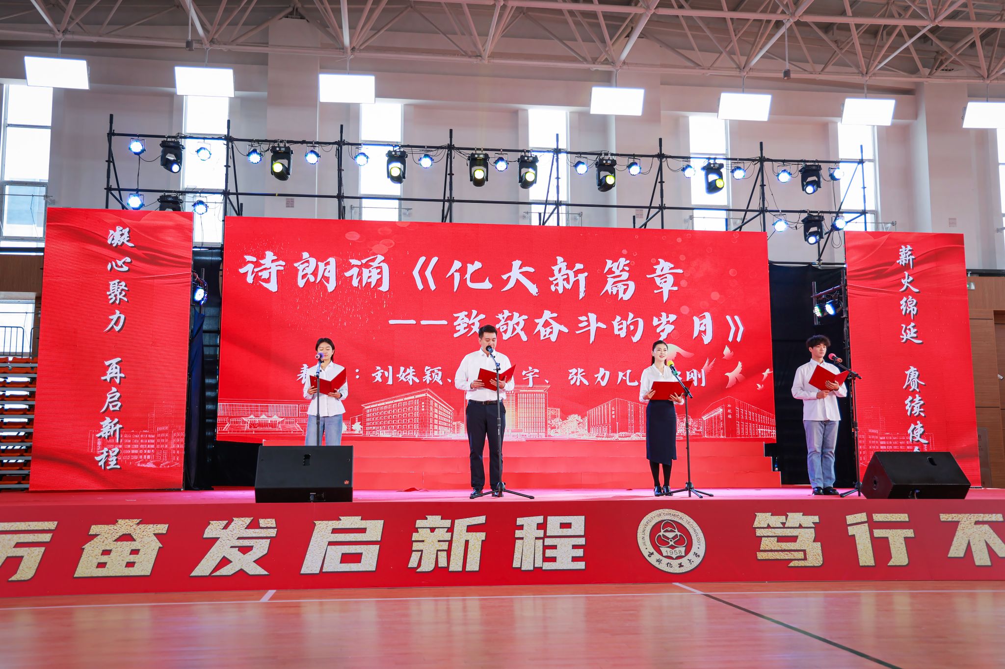 在文艺汇演中。由学校师生带来的歌舞《天地龙麟》《我爱你中国》,诗朗诵《化大新篇章》等节目,表达了全体师生对学校深深的依恋与对未来发展的美好祝愿。