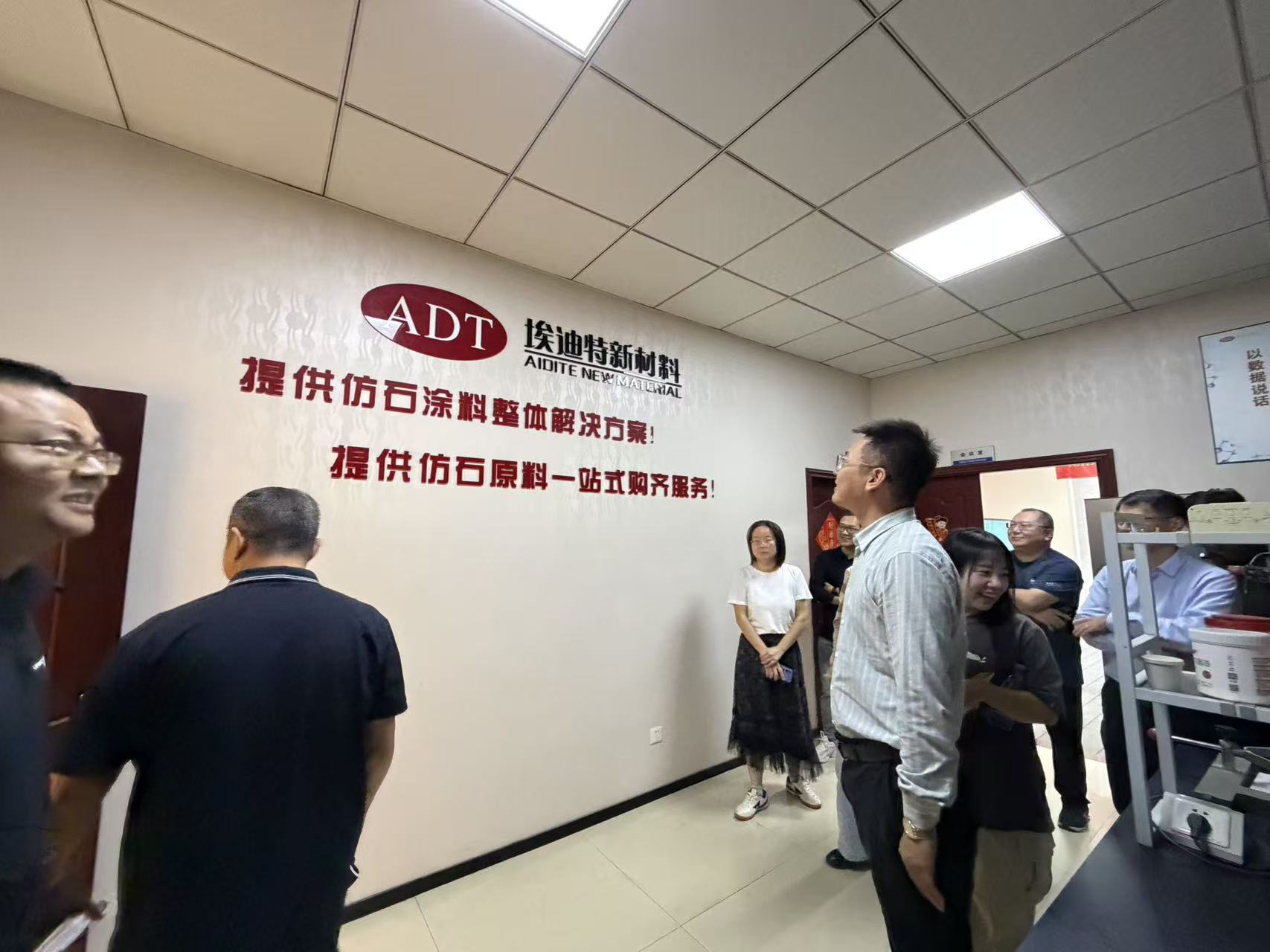 参观企业。活动首站走进福州埃迪特新材料有限公司,该公司负责人为我校福建校友会副会长、 96 级化工工艺专业李华平,在李华平校友的讲解下,了解公司在仿石涂料整体解决方案、仿石原料一站式供应领域的技术创新与产业布局,通过展厅内的仿石建筑模型、荣誉资质墙及先进实验设备,直观感受企业技术实力与行业影响力。